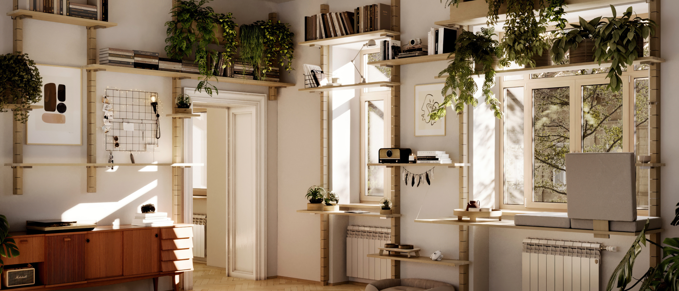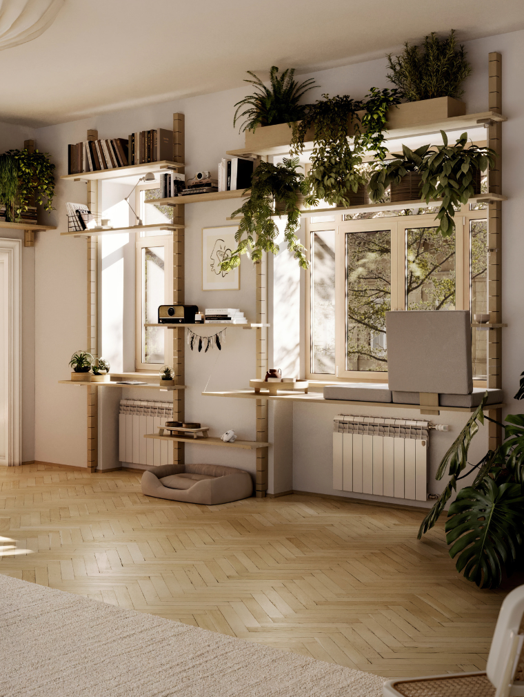 Balcosy SUNDÅ passt sich deinen Bedürfnissen an. Egal ob als Fenstersitz, Pflanzenwand, Bücherregal oder ganz was anderes.