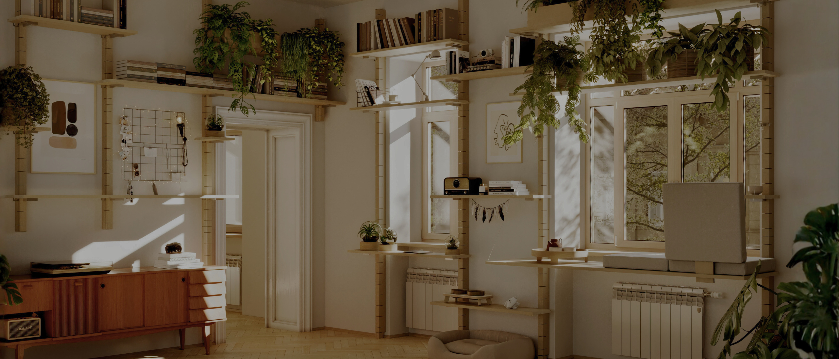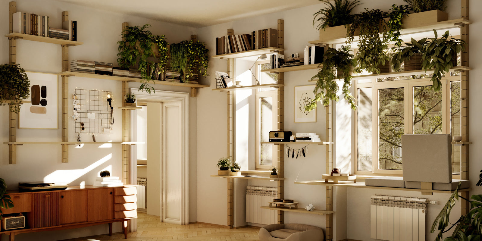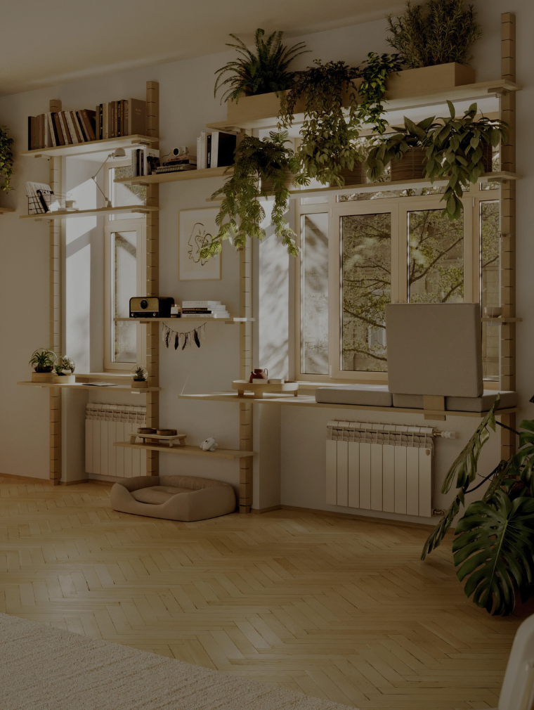 Balcosy SUNDÅ passt sich deinen Bedürfnissen an. Egal ob Fenstersitz, Pflanzenwand, Bücherregal...